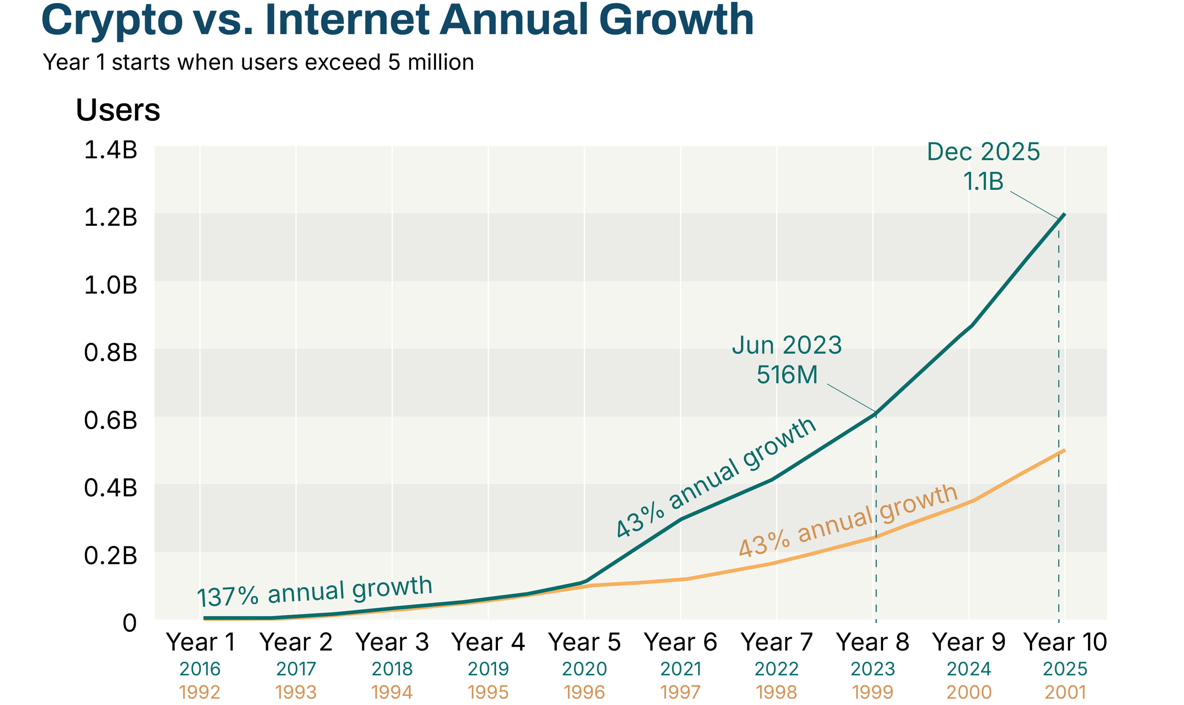 SOURCE: Crypto.com, World Bank, and Global Macro Investor via Stephen McBride, “Chart of the day: Crypto vs internet adoption,” Coinmonks, Medium.com, June 14, 2024.