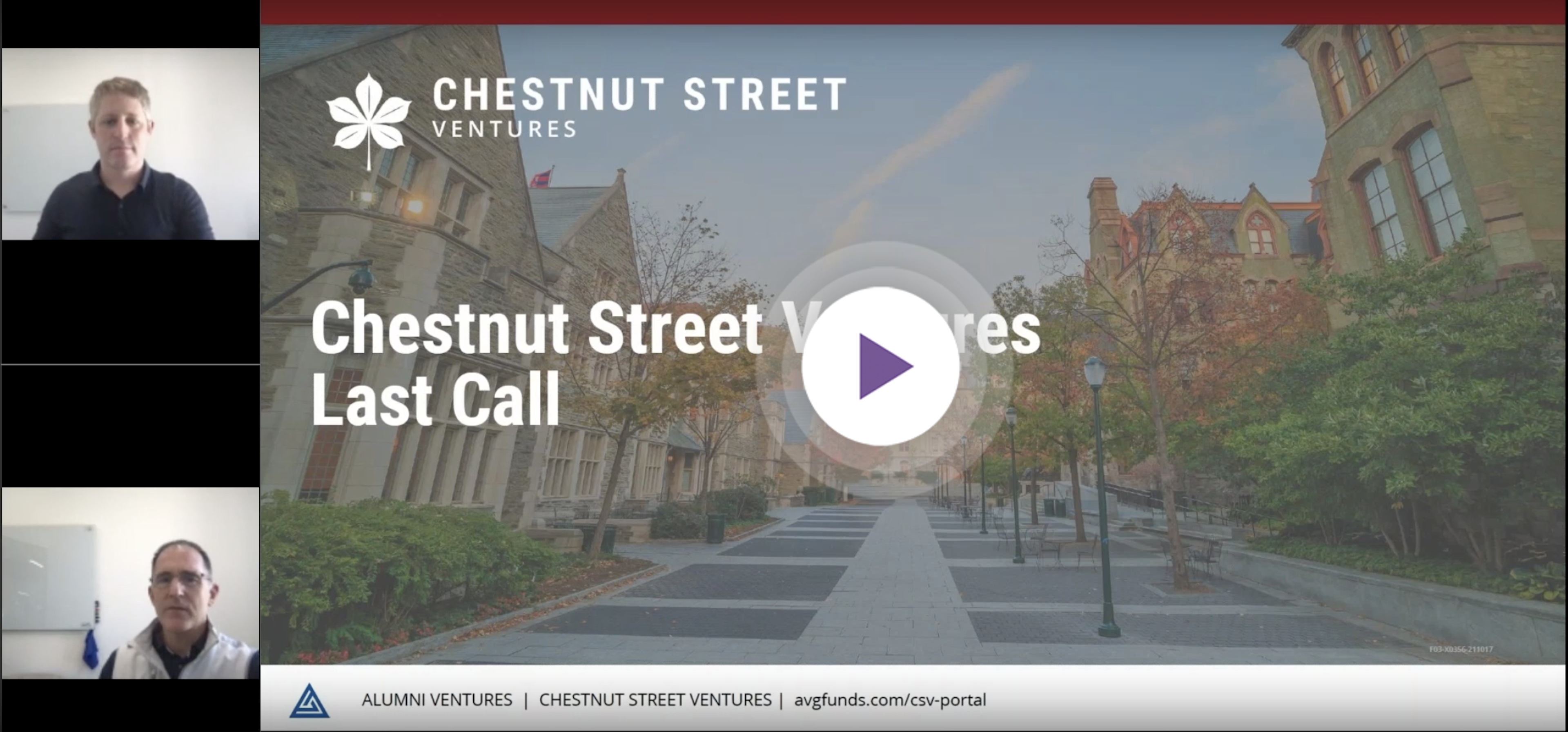 Managing Partner Brian Keil and Partner Jonathan Meltzer discuss some of the investments already made and how they will continue to build a fully diversified venture portfolio. The on-demand 45-minute discussion about Chestnut Street Ventures Fund 5 is open to all alumni and friends of Penn. Chestnut Street Ventures is Alumni Ventures’ Penn-focused venture capital fund.