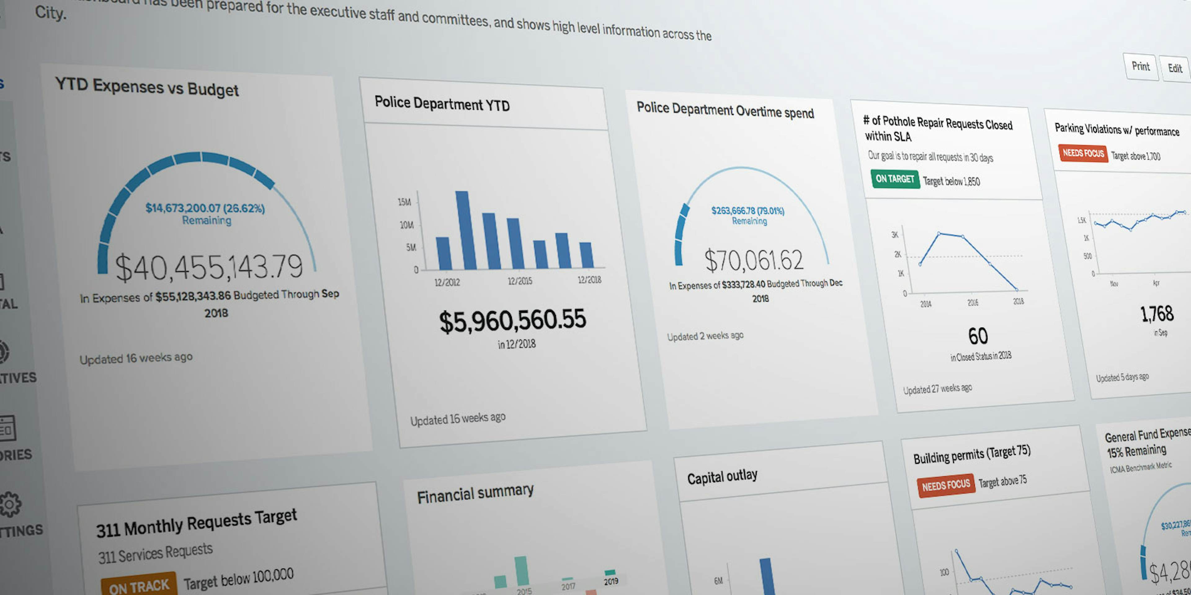 With OpenGov, governments are transitioning from the old way of operating – dusty cabinets with decisions made in back rooms – to a new way. Modern governments leverage multi-tenant SaaS technology to connect stakeholders to the budget process, align budget money to the highest-priority initiatives, focus on performance outcomes and communicate complex data and issues in a way that all stakeholders can understand. They’re seeing immediate results, like cutting budget development time in half, cutting their reporting time by over 75%, reducing FOIA requests by 20%, and identifying up to 1% of their budget that can be reallocated to more strategic initiatives.