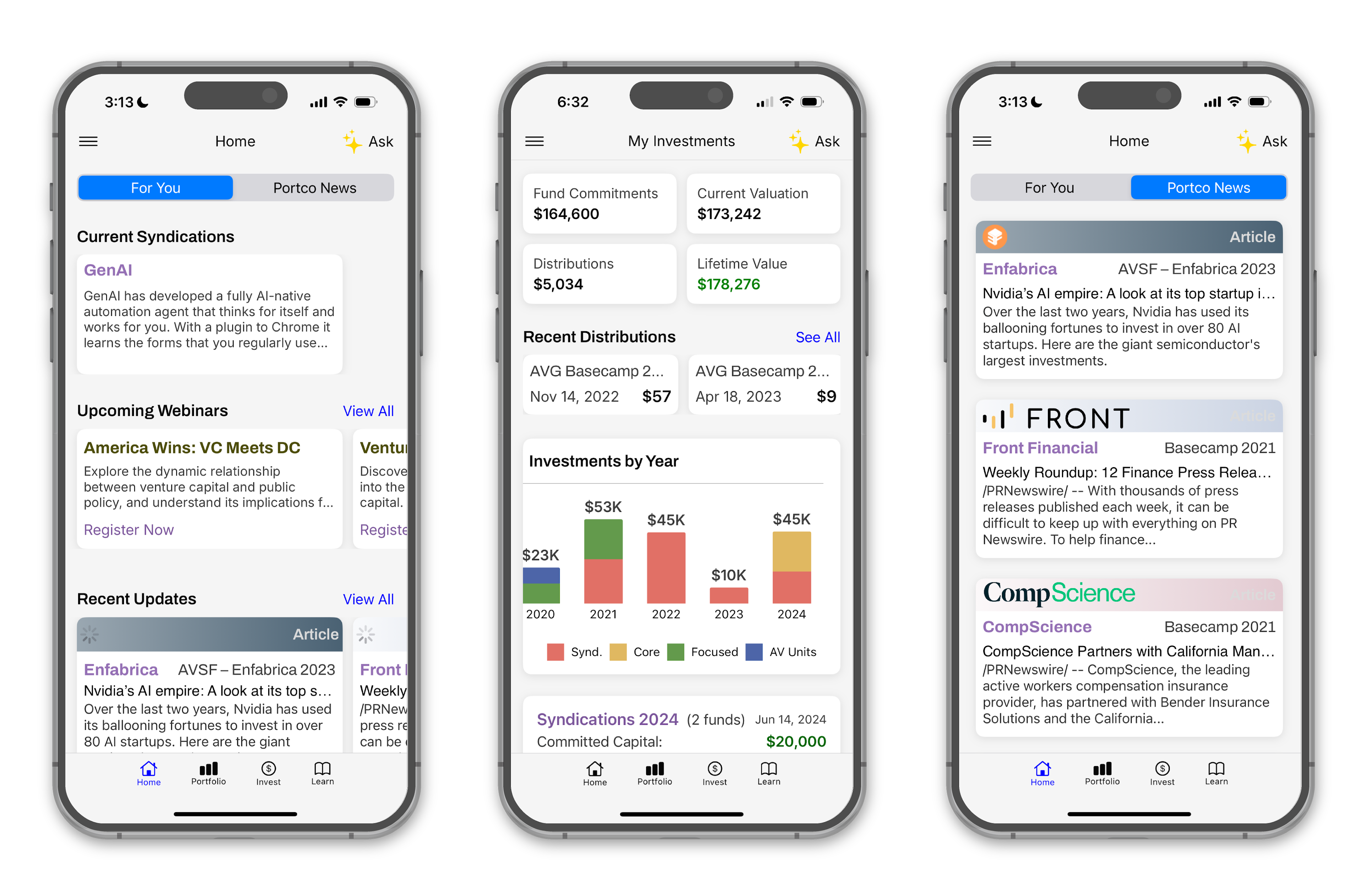 Join live deal discussions and portfolio webinars to ask questions, dig into diligence, and hear founder stories firsthand.